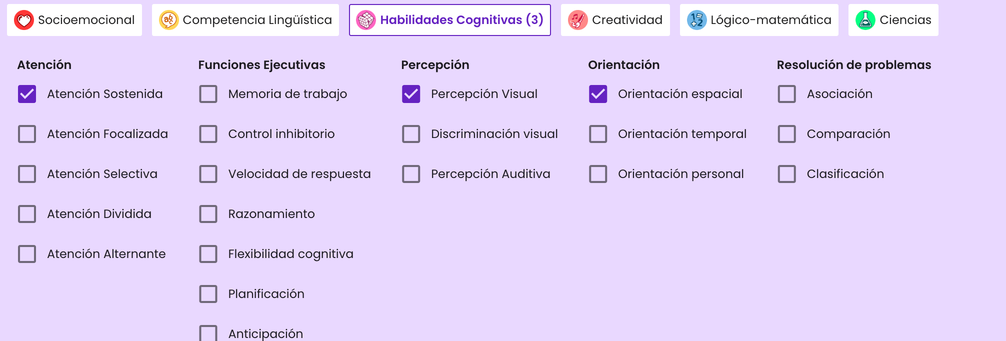 Nuestros juegos están perfectamente selccionados para trabajar distitnas áreas y habilidades importantes para el futuro de los niños y niñas. Con unos sencillos pasos puedes crear sesiones dependiendo del perfil de cada niño. Por ejemplo, una niña con buen razonamiento lógico, interés por la ciencia, motivada por los juegos de palabras y que tiene una escritura manual poco legible, lentitud al escribir, dificultad con la coordinación grafomotriz. Podríamos decir que hay indicios de una disgrafia, en tal caso, seleccionaremos los juegos que trabajen el vocabulario, la grafomotricidad, la coordinación , lateralidad y la relajación entre otras.